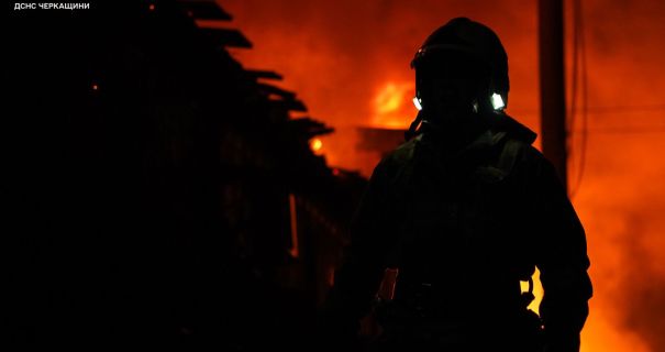 Ночная атака дронами в Черкасской области: спасатели потушили пожар