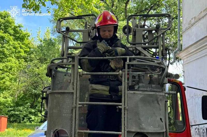 Кроме того, в городе Нежин котик залез на высокое дерево и несколько суток не мог спуститься. Бойцы ГСЧС спасли и этого пушистика.