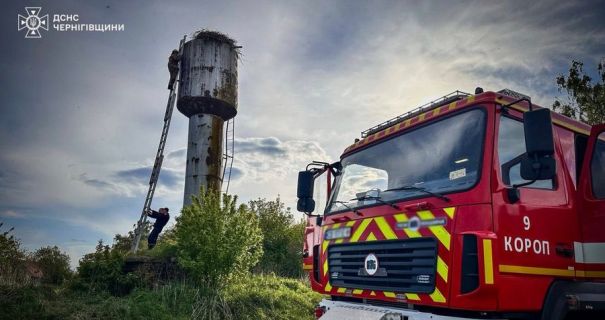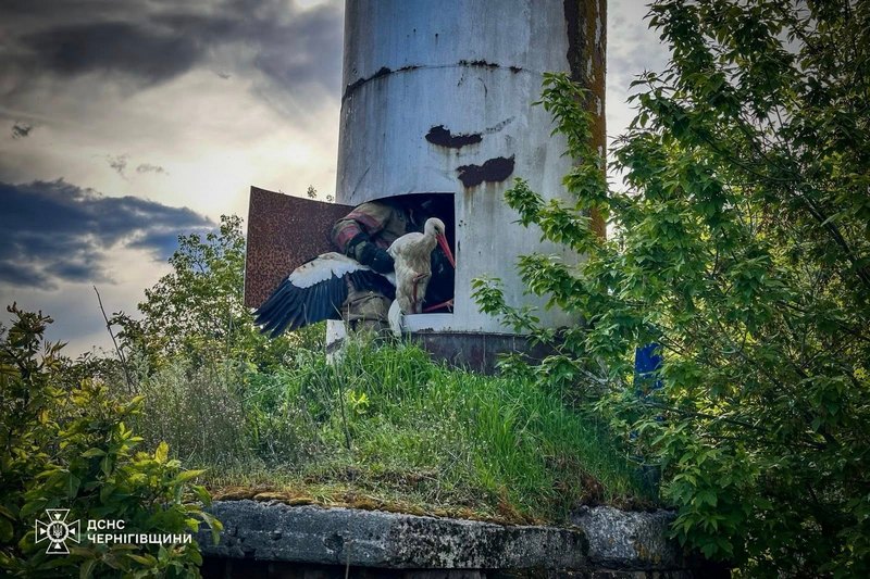 На Черниговщине спасли двух аистов, упавших в заброшенную водонапорную башню