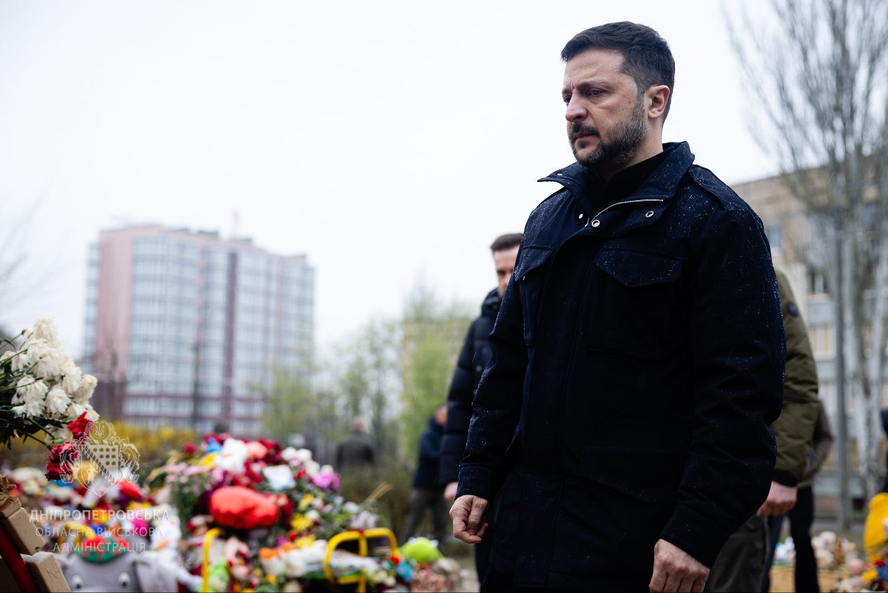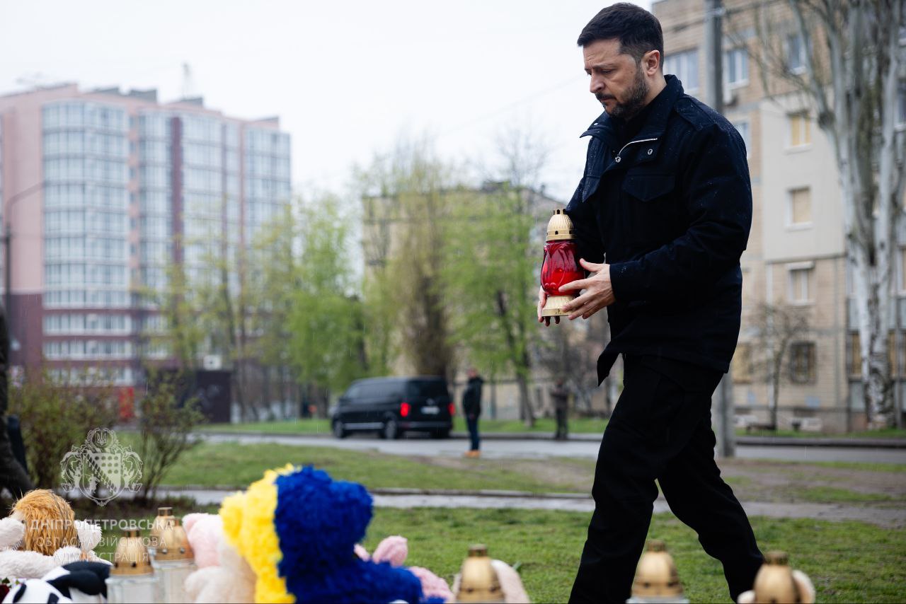 Владимир Зеленский 11 апреля приехал в Кривой Рог и почтил память людей, погибших в результате удара россиян 4 апреля. Президент отметил, что это обычный городской район: вокруг жилые дома и только гражданская застройка.