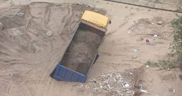Известно, что на место инцидента прибыл экскаватор, начавший разгружать автомобиль, чтобы вытащить его из ловушки.