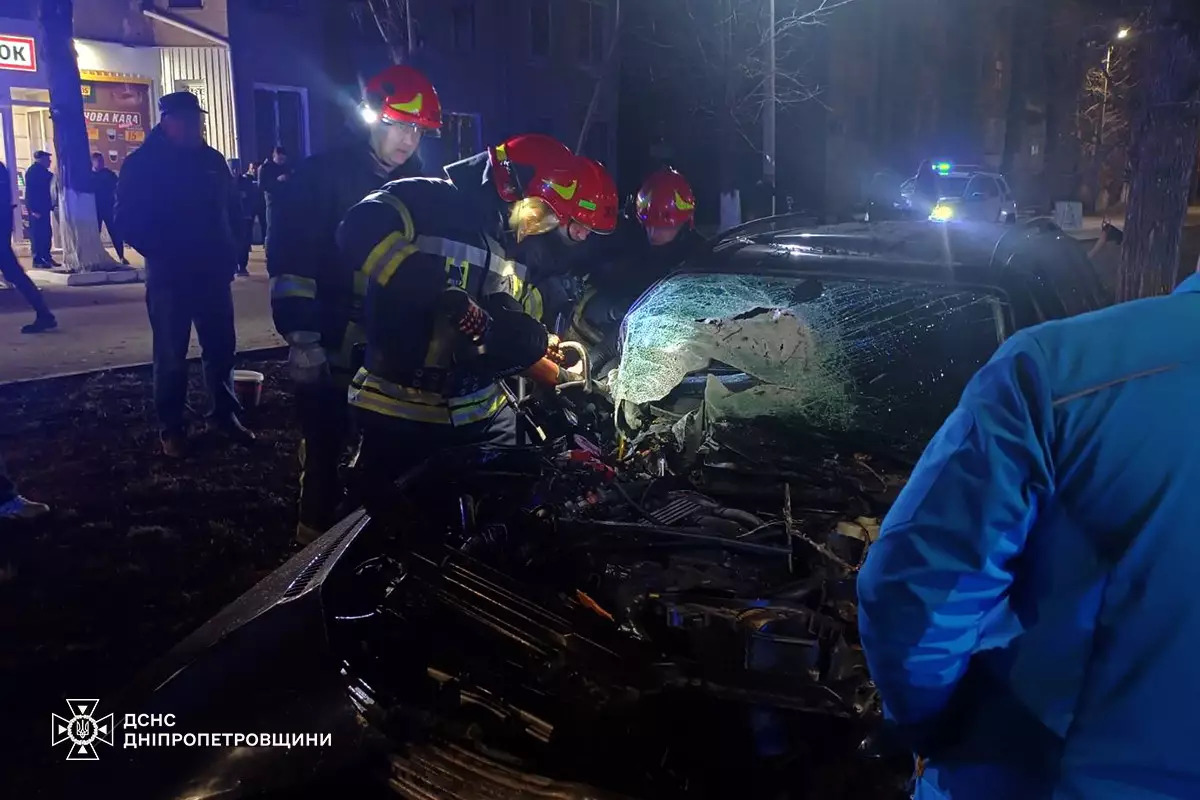 На Днепропетровщине автомобиль влетел в бетонную опору: двое пострадавших