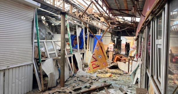 В результате атаки повреждены торговые павильоны и магазин. Возник пожар.