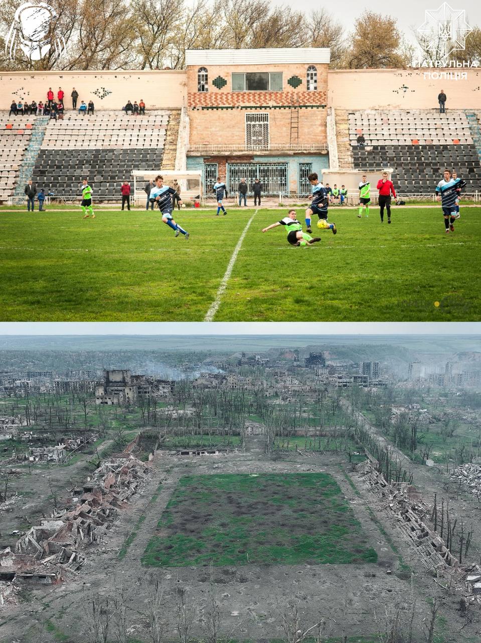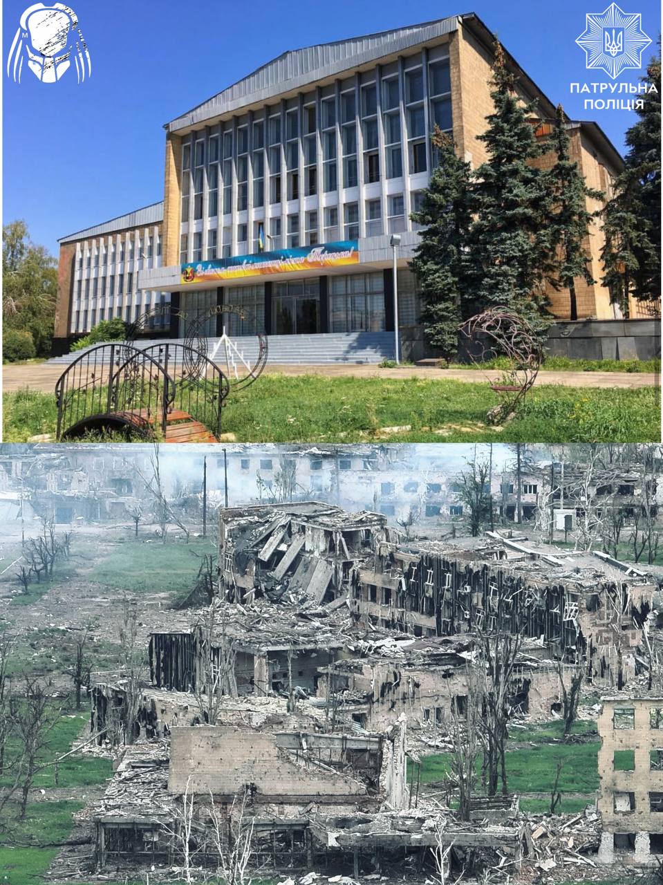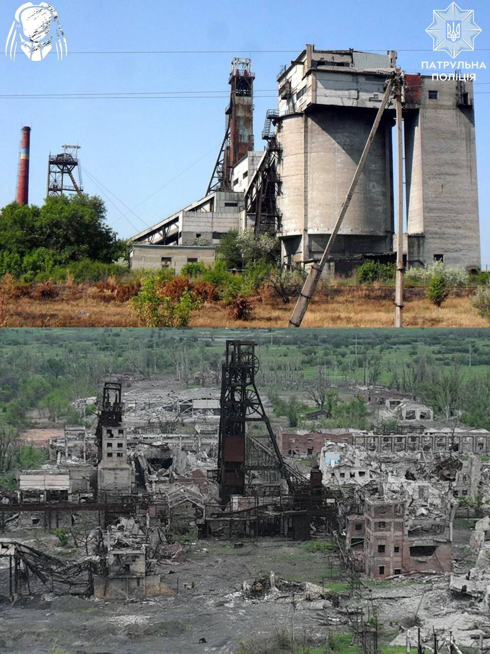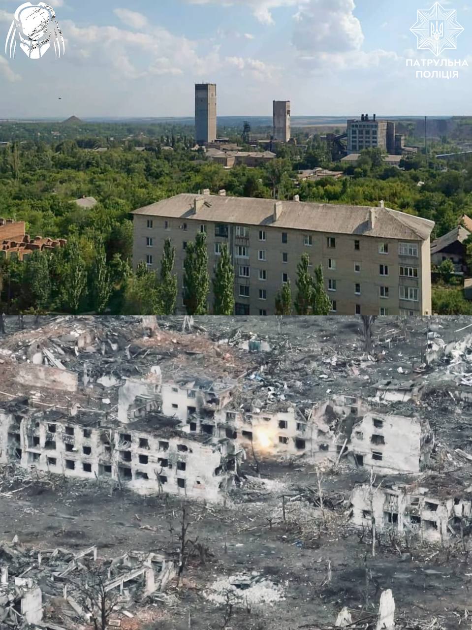 "Когда-то — город шахтеров, спорта и культуры. Сегодня — линия фронта, пожарище и пустые улицы. Так выглядит Торецк после "освобождения". Российская чума выжгла все живое. На фото — два мира. До и после", - говорится в сообщении.