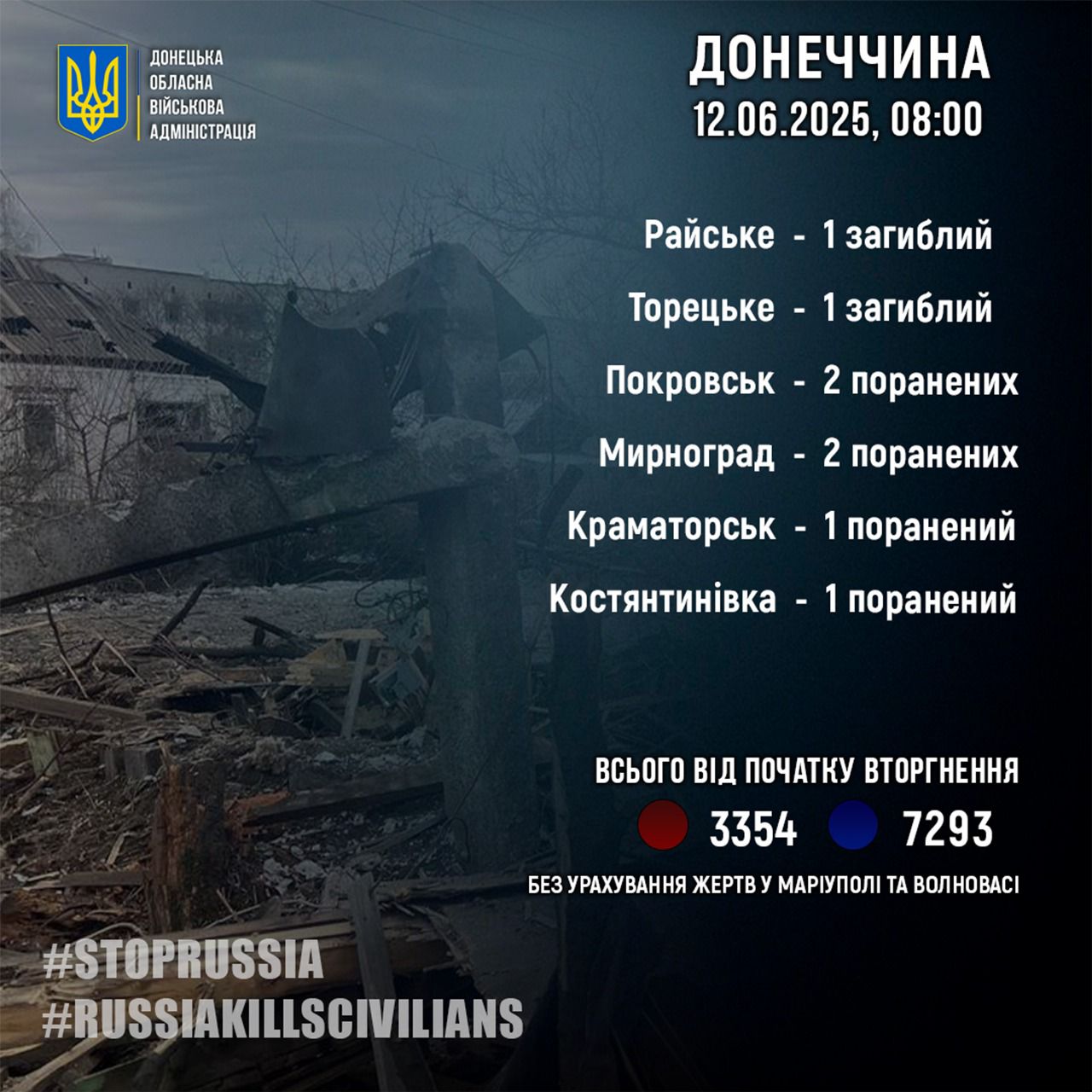 Российская армия минувших суток, 11 июня, убила двух жителей Донецкой области, еще шесть человек получили ранения