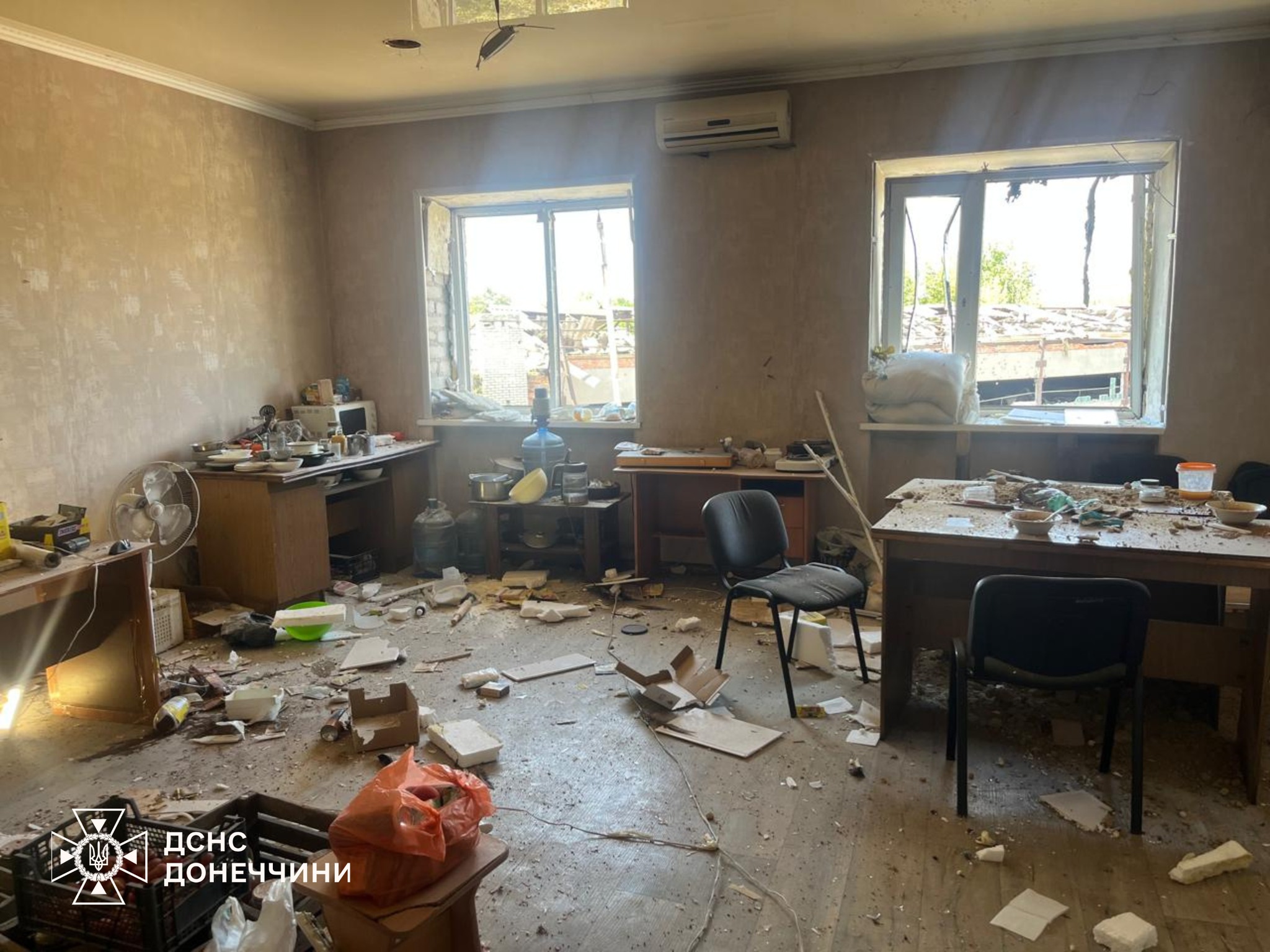 В результате обстрела повреждено здание пожарно-спасательной части. К сожалению, двое спасателей получили ранения. Их госпитализировали.