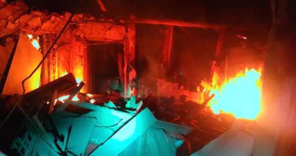 В результате обстрела разрушен частный дом, под завалами оказались люди. Возник пожар.