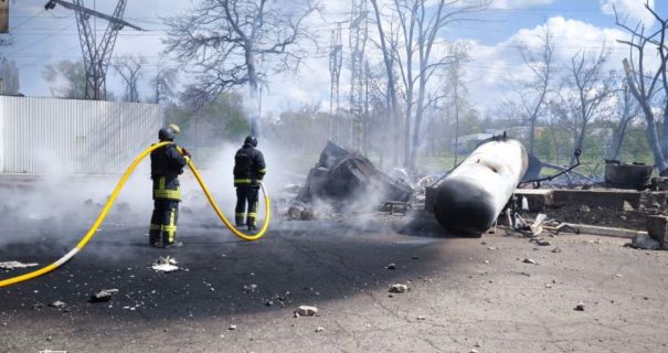 Россияне ударили дроном по заправке в Краматорске: загорелся резервуар с газом