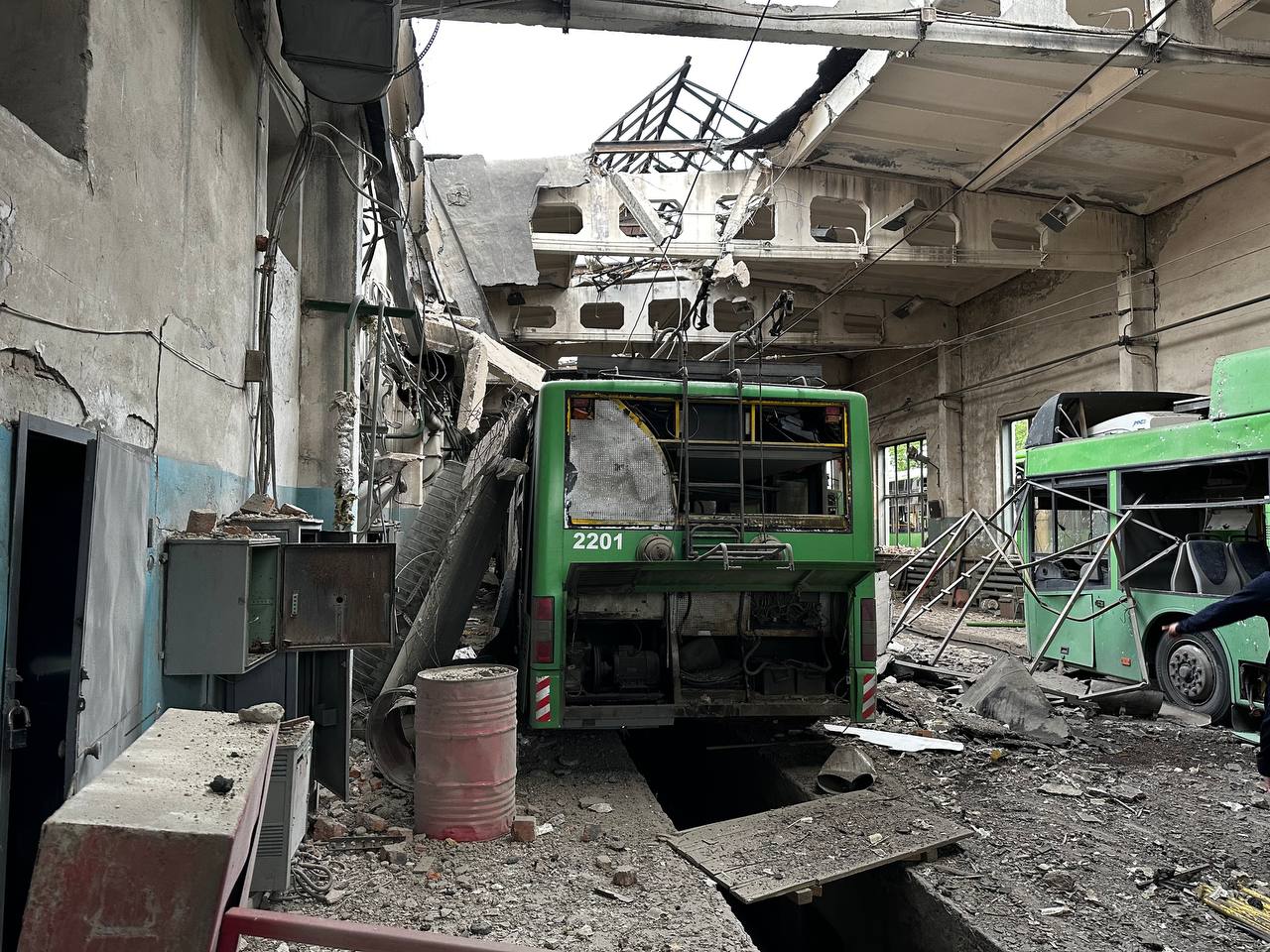 "Относительно депо. Как и всегда, большинство транспорта мы заранее рассредоточили по городу – именно это спасло нас от значительно больших потерь. Но находившаяся в ремонте техника попала под удар: один троллейбус уничтожен полностью, еще 18 получили различные степени повреждений", – рассказал мэр.
