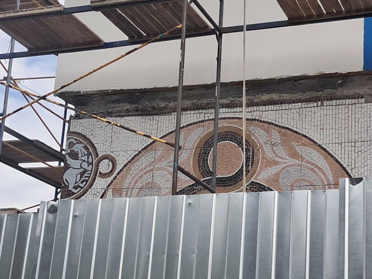 "Однако сейчас ее сбивают. По проекту реновации дома на фото первый этаж не предполагает сохранение этих панно на тематику древней истории. Почему такое решение приняли и не интегрировали мозаику в обновление - загадка. Враги не разбили, поэтому наши проектанты решили добить", - говорит активистка.