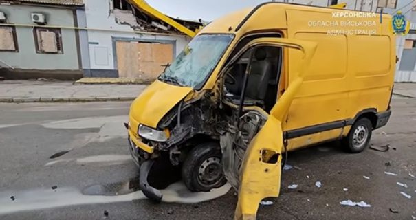 В Херсоне дрон атаковал микроавтобус, мужчина получил тяжелые ранения