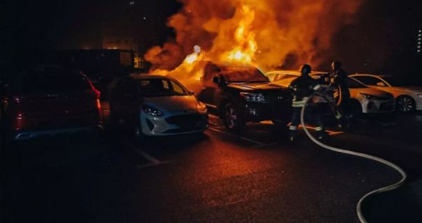 В городе Буча Киевской области в результате пожара повреждены пять автомобилей. Больше всего пострадал автомобиль, который занялся на парковке