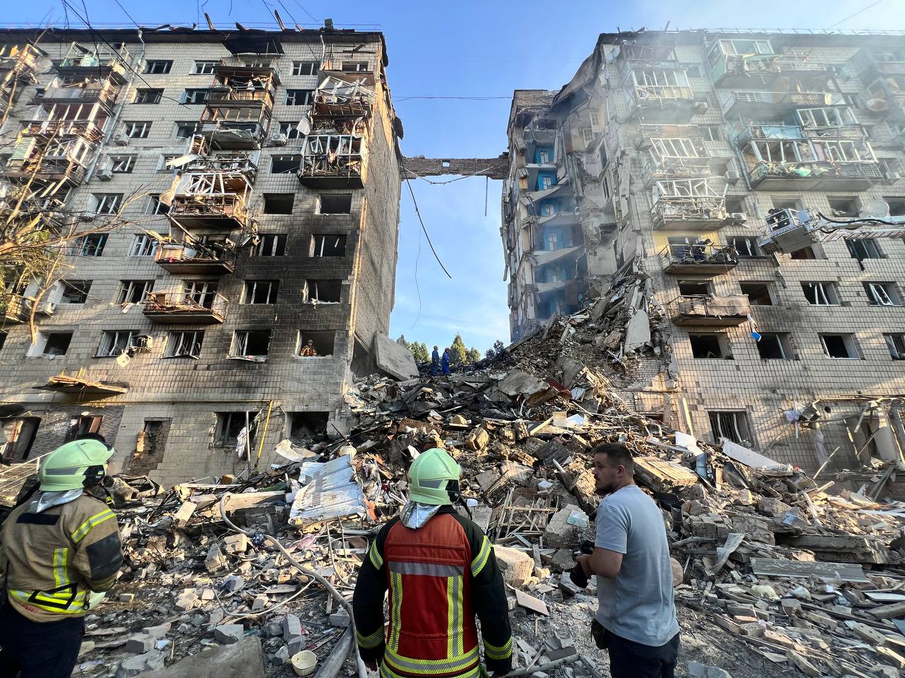 В Соломенском районе разрушен подъезд жилого дома. Там сейчас работают спасатели, разбирают завалы.