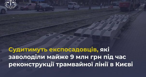 Прокуроры Офиса Генерального прокурора завершили досудебное расследование и направили в суд обвинительный акт в отношении двух бывших руководителей коммунальных предприятий и владельца частной компании, подозреваемых в присвоении почти 9 миллионов гривен во время реконструкции трамвайной линии в Киеве. Им инкриминируют мошенничество и служебный подлог по нескольким статьям Уголовного кодекса Украины.