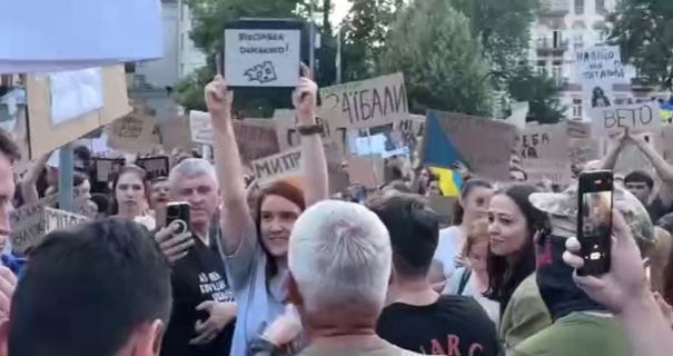 Марианна Безугла, которая голосовала за законопроект о НАБУ и САП, пришла на митинг в столице, где люди протестовали против этого документа. На видео в соцсетях можно услышать, как люди восклицали ей: "Составь мандат".