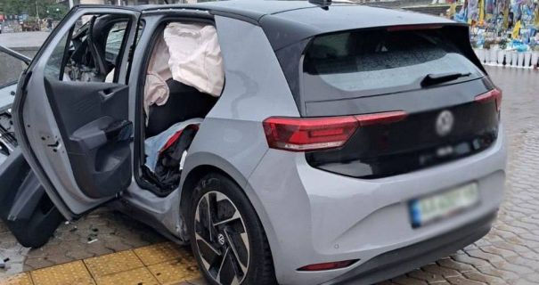 ДТП произошло сегодня около 7:00. Водитель электромобиля Volkswagen, двигаясь по улице Крещатик со стороны Бессарабской площади, не справился с управлением, в результате чего выехал на пешеходную часть дороги, где столкнулся с бетонным заграждением подземного перехода.