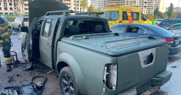 Сегодня утром, 18 августа, в Подольском районе Киева на парковке возле жилого дома произошел взрыв в легковом автомобиле, раскрашенном под военный