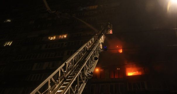 В Печерском районе обломки БпЛА попали в многоэтажный жилой дом – там горели квартиры на нескольких этажах, пожар ликвидирован.