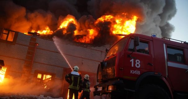 После вражеской атаки в Днепровском районе Киева пылают склады, есть перебои со светом и водой