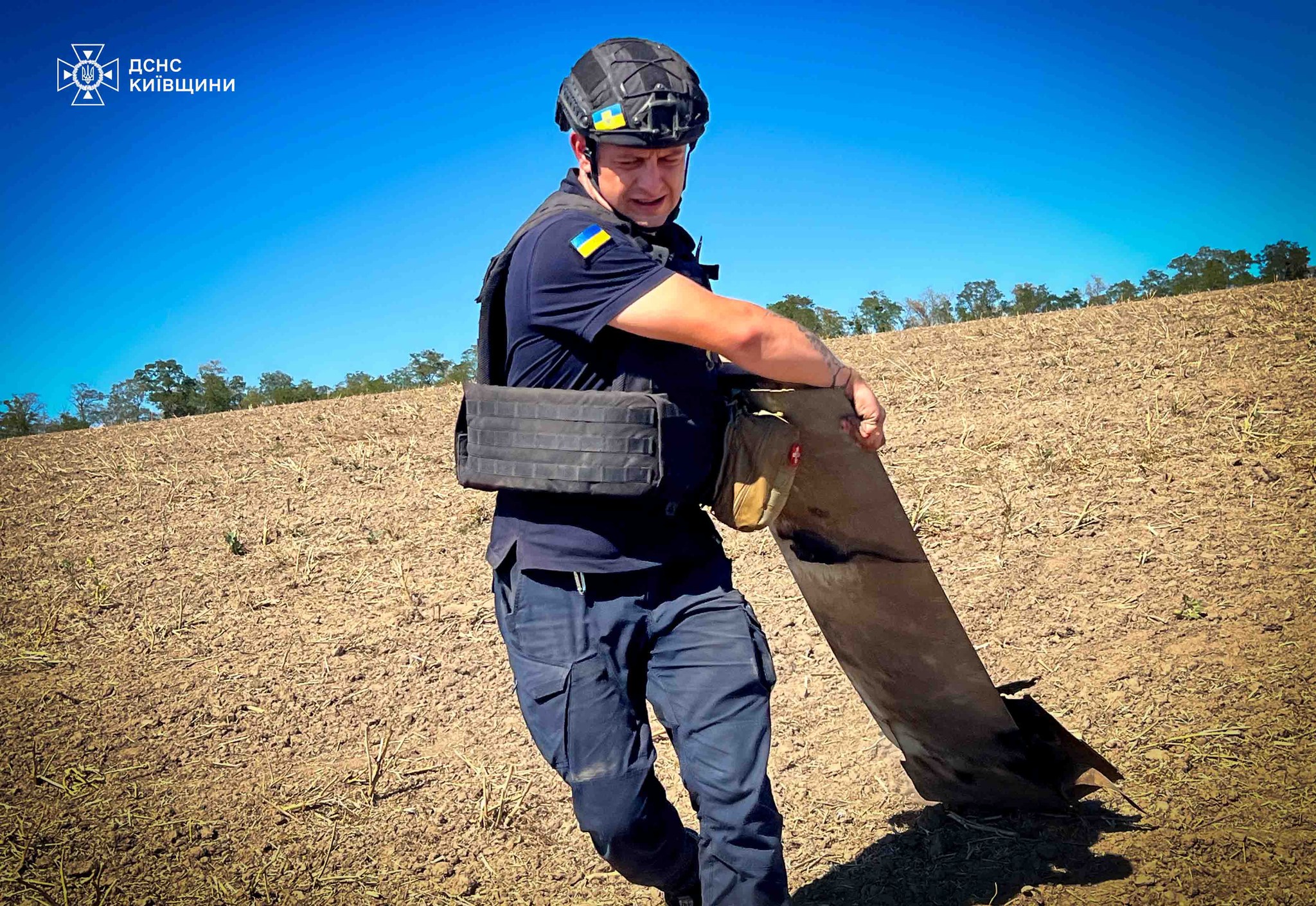 В поле в Белоцерковском районе Киевской области были обнаружены обломки российской крылатой ракеты типа Х-101. На место прибыл офицер-спасатель Медвинского территориального общества, который во время обследования установил, что найденные обломки содержат боевую часть