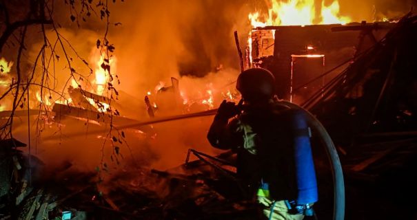 В городе Буча в результате вражеской атаки дронами-камикадзе возник масштабный пожар в частном нежилом доме. Площадь возгорания составила около 100 кв. м.