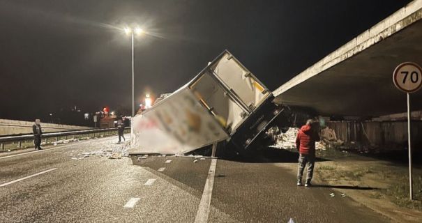 Водитель грузовика MAN с прицепом MS-Parts, двигаясь в направлении Киева, врезался в опору моста.