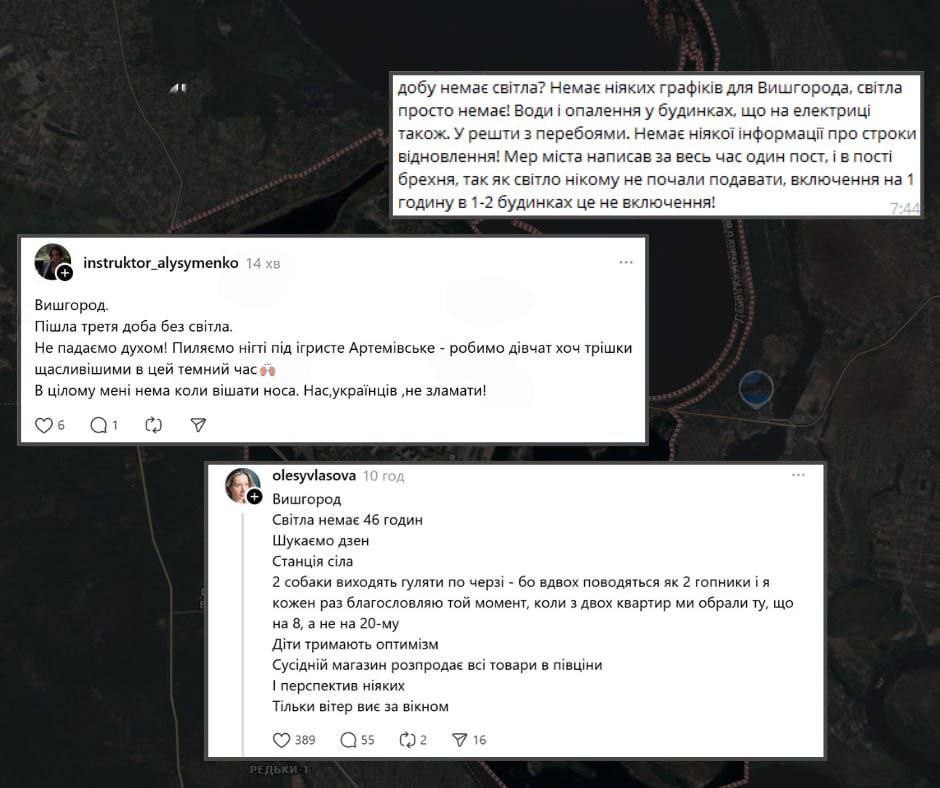 Вышгород на Киевщине без света уже третьи сутки: нет воды и отопления