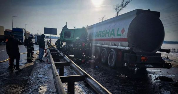 На Киевщине столкнулись два грузовика: возник пожар, есть погибший и травмированный