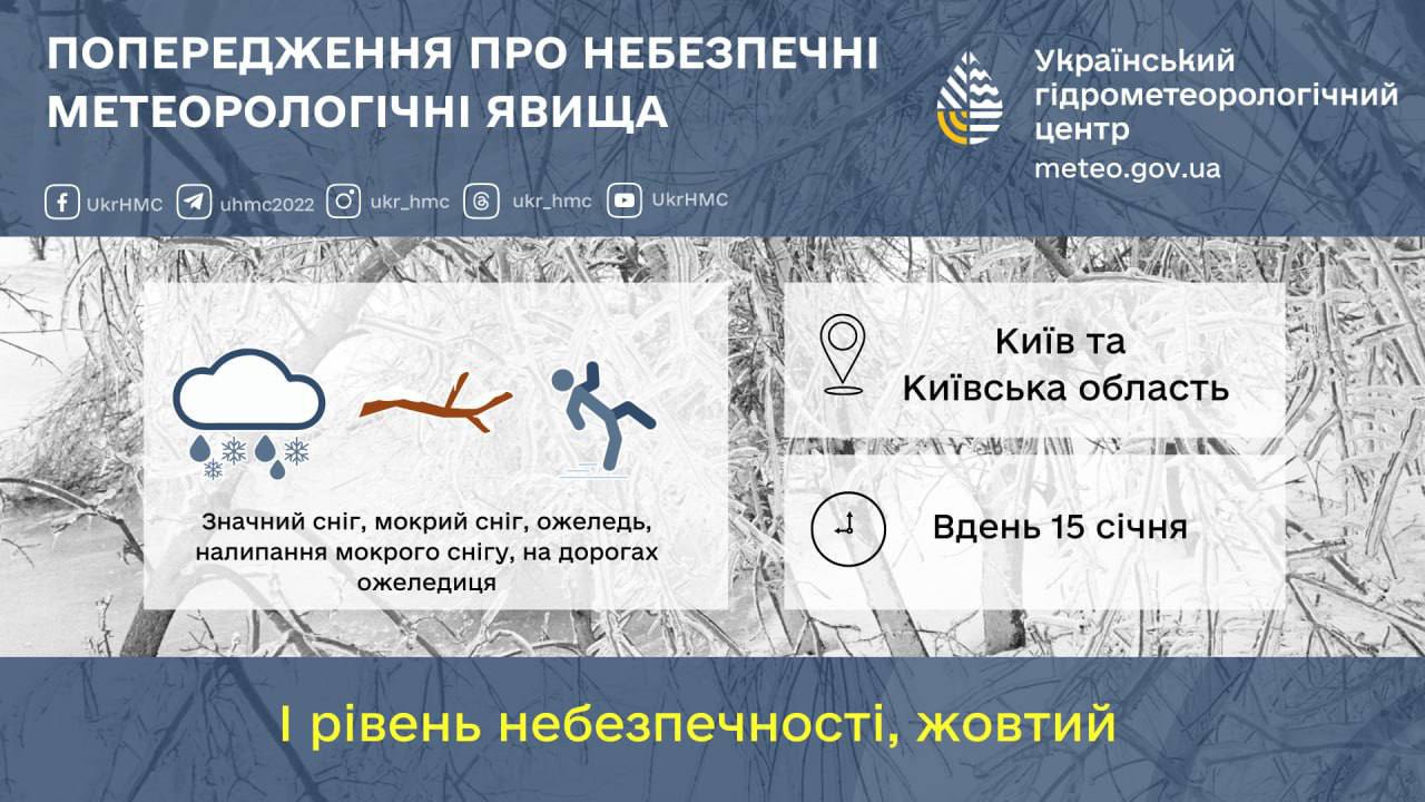 Ранее синоптик Н.Диденко предупреждала, что 15 февраля предполагается мокрый снег, налипание мокрого снега, осадки будут достигать сильных значений, порывы ветра – к штормовым, вьюги, а на юге и востоке Украины ожидаются сильные дожди.