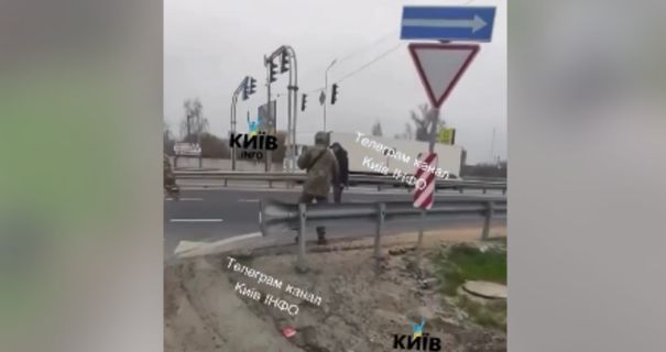 На видео видно, как военный с пистолетом преследует мужчину. Очевидцы утверждают, что у преследуемого был нож в руках.