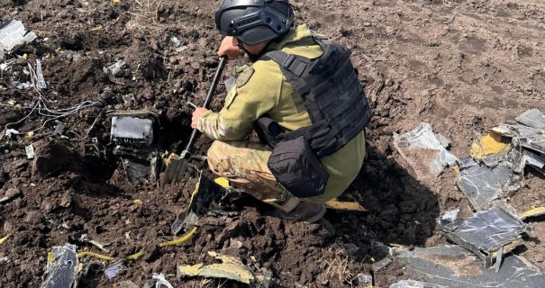 Отмечается, что боевая часть найденного дрона весом более 50 кг не сдетонировала и частично углубилась в землю.