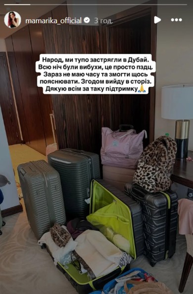 По словам MamaRika, они застряли в Дубае. Певица рассказала, что всю ночь были взрывы. Артистка отметила, что как только она сможет, она выйдет на связь с фанатами в социальной сети. Также она поблагодарила всех за поддержку.