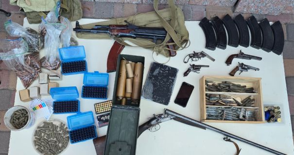 Во время обыска дома у 51-летнего мужчины изъяли четыре револьвера, автомат Калашникова, охотничье ружье, четыре гранаты, взрывные пакеты, более тысячи патронов разного калибра, магазины и другие вещественные доказательства. Все отправили на экспертизу.