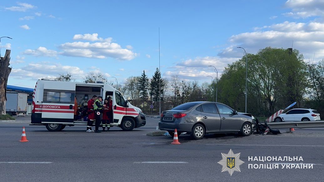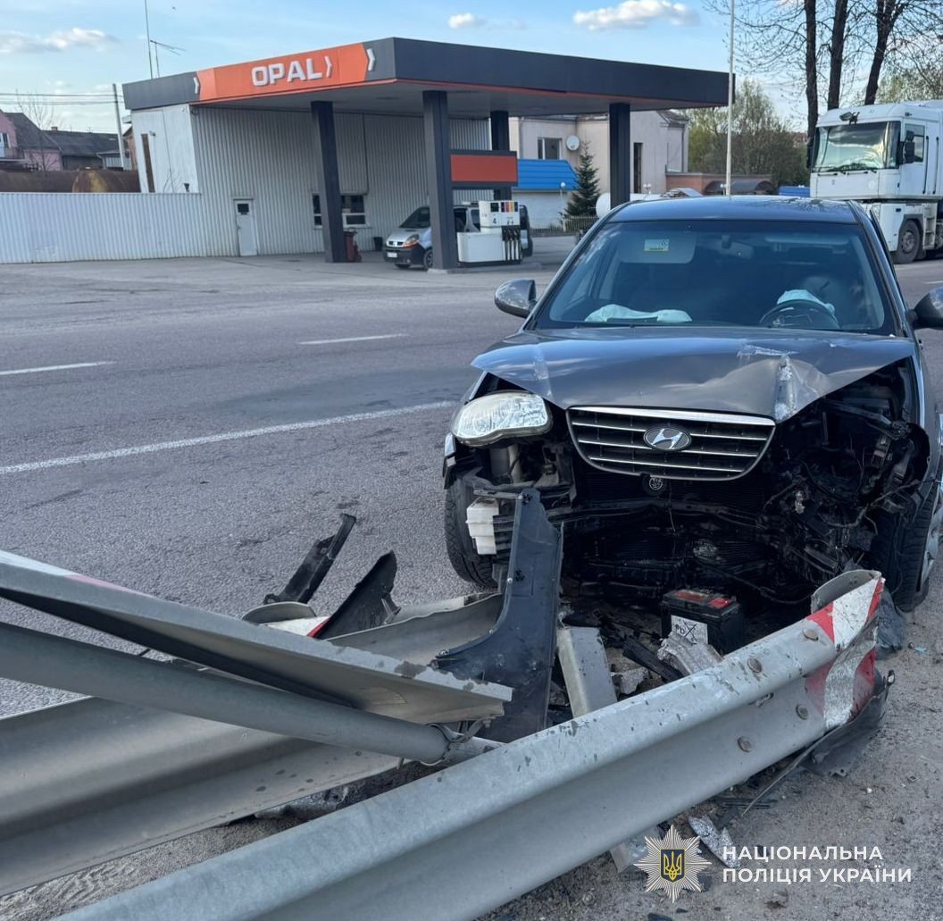 Водитель автомобиля Hyundai Elantra, 63-летняя львовянка, не справилась с управлением и въехала в отбойник.
