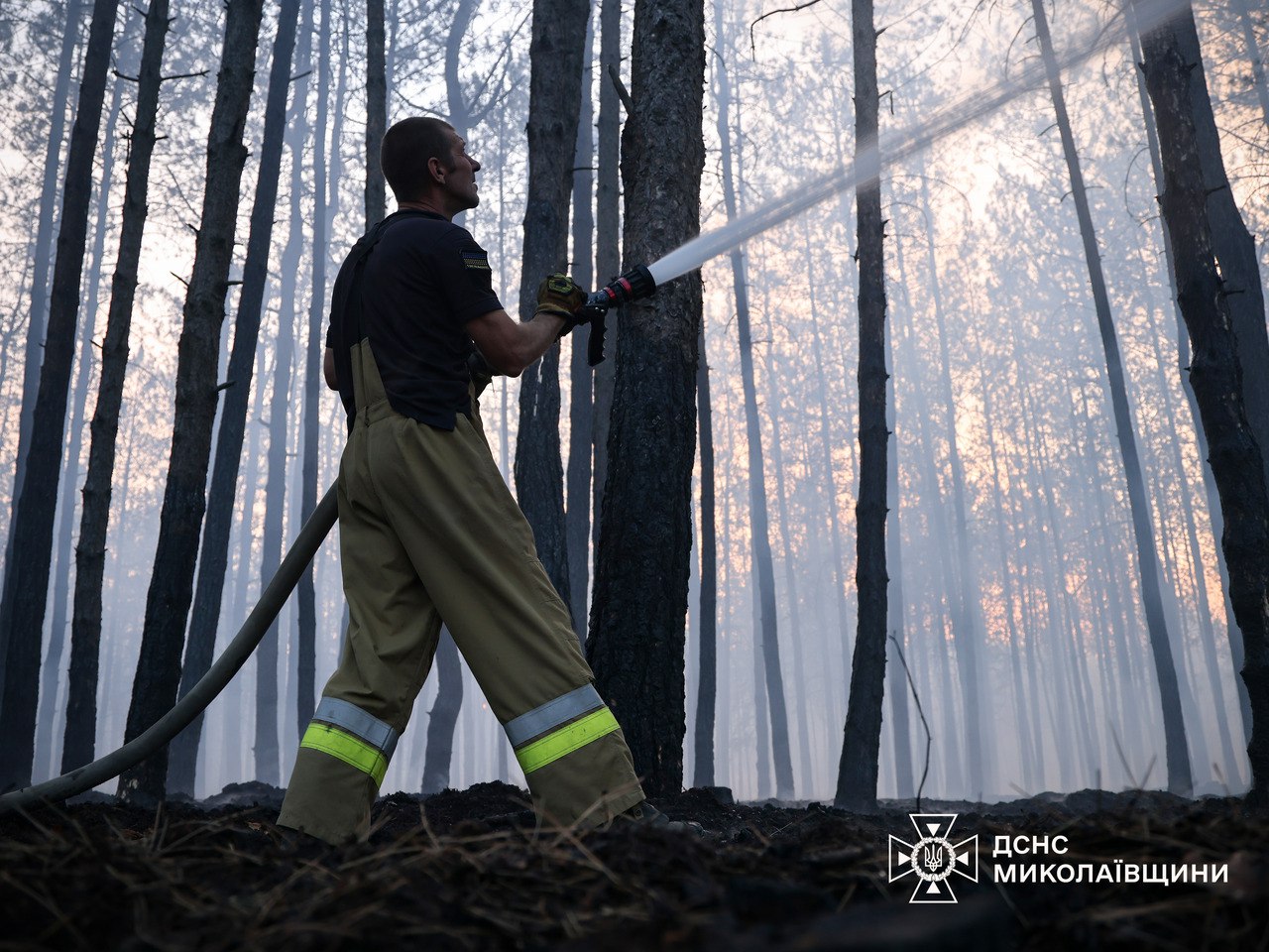 На Николаевщине почти сутки тушат масштабный пожар в Андреевском лесном урочище