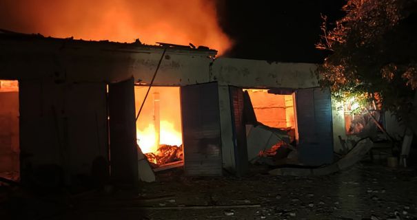 В Баштанском районе ночью Shahed попали в фермерское хозяйство Снигиревской громады. Загорелись склады на площади около 30 кв.м, пожар удалось ликвидировать. Люди не пострадали. Взрывной волной повреждены четыре частных дома и два автомобиля.
