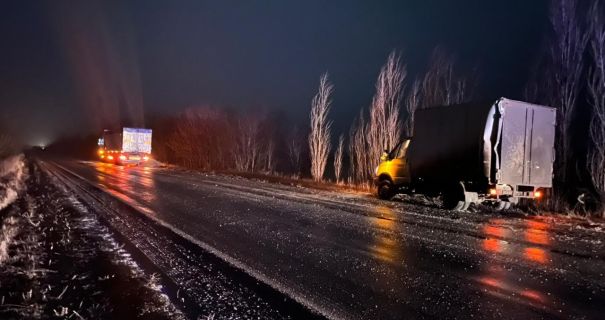 Водитель грузовика DAF с полуприцепом столкнулся с микроавтобусом ГАЗель, который стоял на обочине дороги. В результате удара ГАЗель сдвинулась с места и наехала на мужчину, который находился впереди и очищал лобовое стекло.