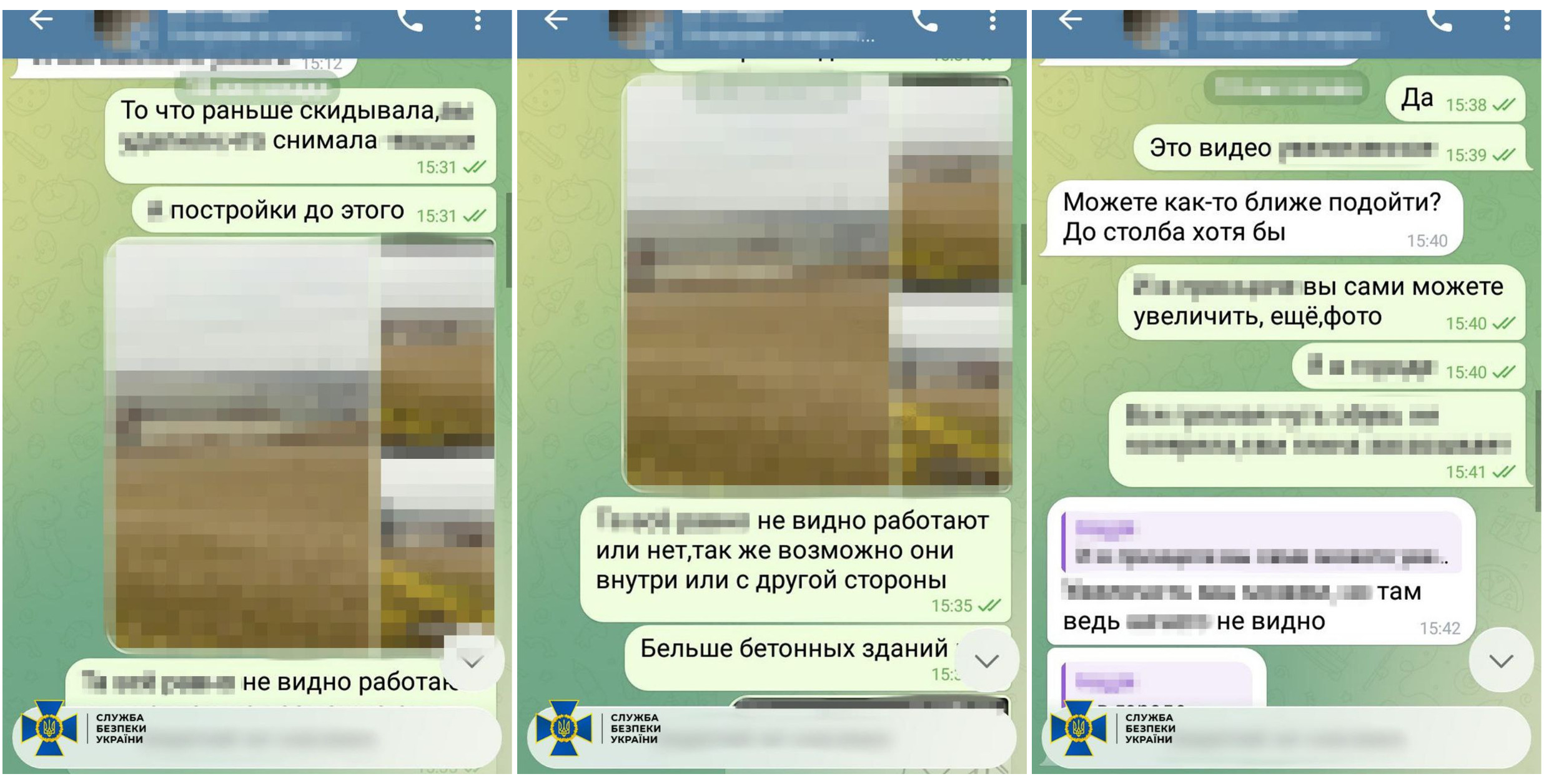 Собранную информацию фигурантка через мессенджер передавала куратору ФСБ. В частности, кроме фото с пометками на гугл-картах, "отчитывалась" об этапах восстановительных работ на объектах.