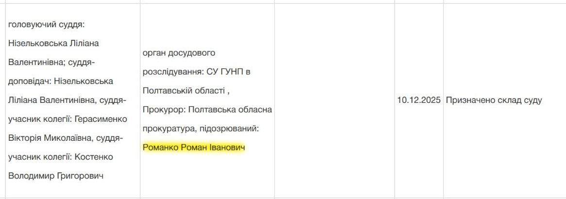 Информация об избрании меры пресечения подтверждается данными на официальном сайте судебной власти. В то же время материалы уголовного производства в Едином государственном реестре судебных решений закрыты.