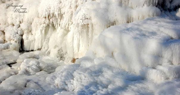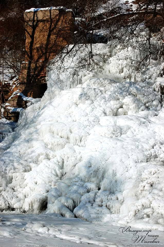 Фотографии замерзшего водопада обнародовал в Фейсбуке фотограф Владимир Тихович, передает RegioNews.