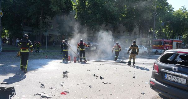 Отмечается, что один из снарядов попал в дорожное покрытие в жилом районе, вызвав пожар автомобиля. Спасатели быстро ликвидировали возгорание.
