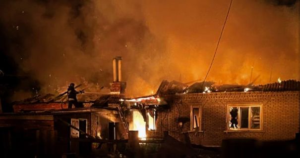 Вражеские ударные беспилотники атаковали частный сектор. На местах попадания возникли пожары.
