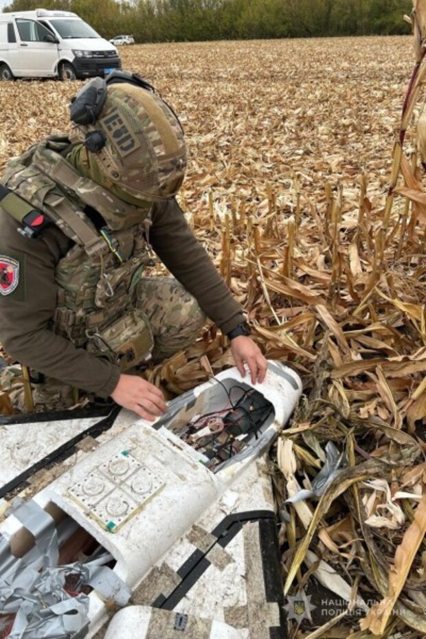 Во время уборки урожая на поле в Сумском районе аграрии обнаружили вражеский беспилотник. Комбайнер обошел находку и сообщил о ней полицию