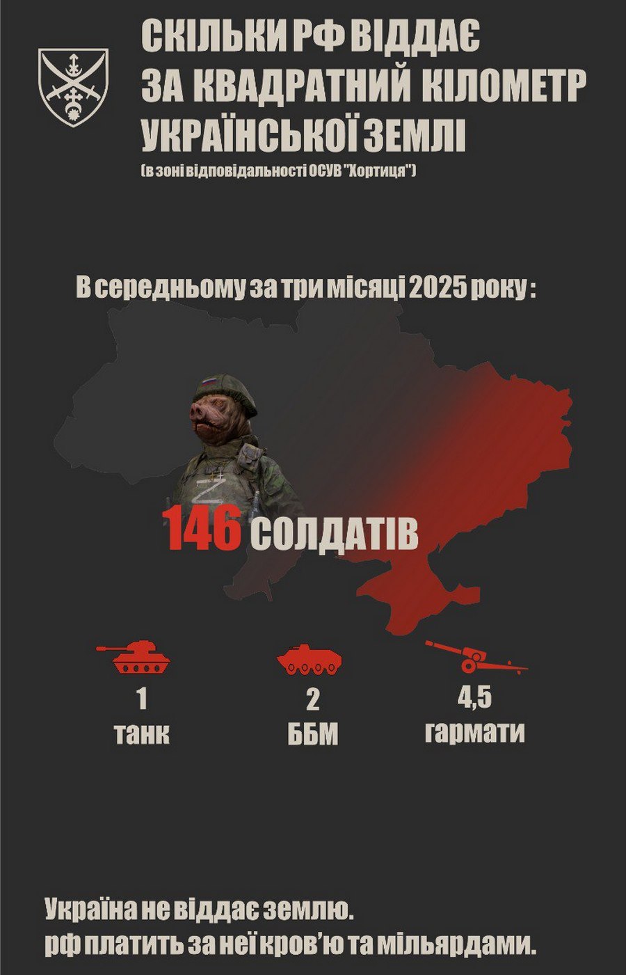 В ОСУВ "Хортица" подсчитали, какую цену отдает Россия за каждый квадратный километр украинской земли