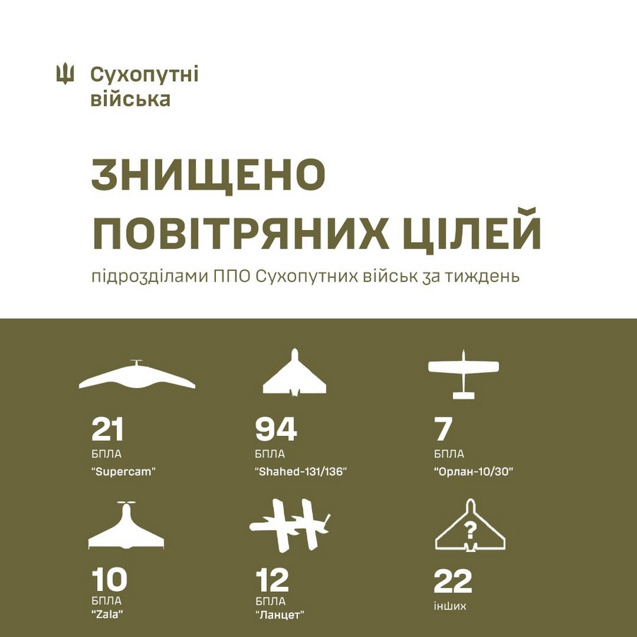 За прошедшую неделю ПВО Сухопутных войск уничтожила 166 средств воздушной разведки и нападения РФ