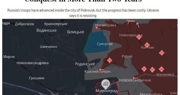 По данным журналистов, падение Покровска может стать самым серьезным поражением для Украины со времен боев за Бахмут и поставить под угрозу соседний Мирноград.