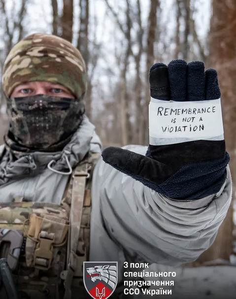 Так, наши защитники опубликовали фотографии, на которых держат в руке стикеры с надписью Remembrance is not a violation –"Память не нарушение".