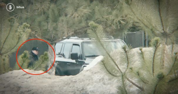 Ростислав Пекарь садится в служебный автомобиль возле дома в "Золоче". Фото: Bihus.Info