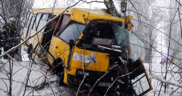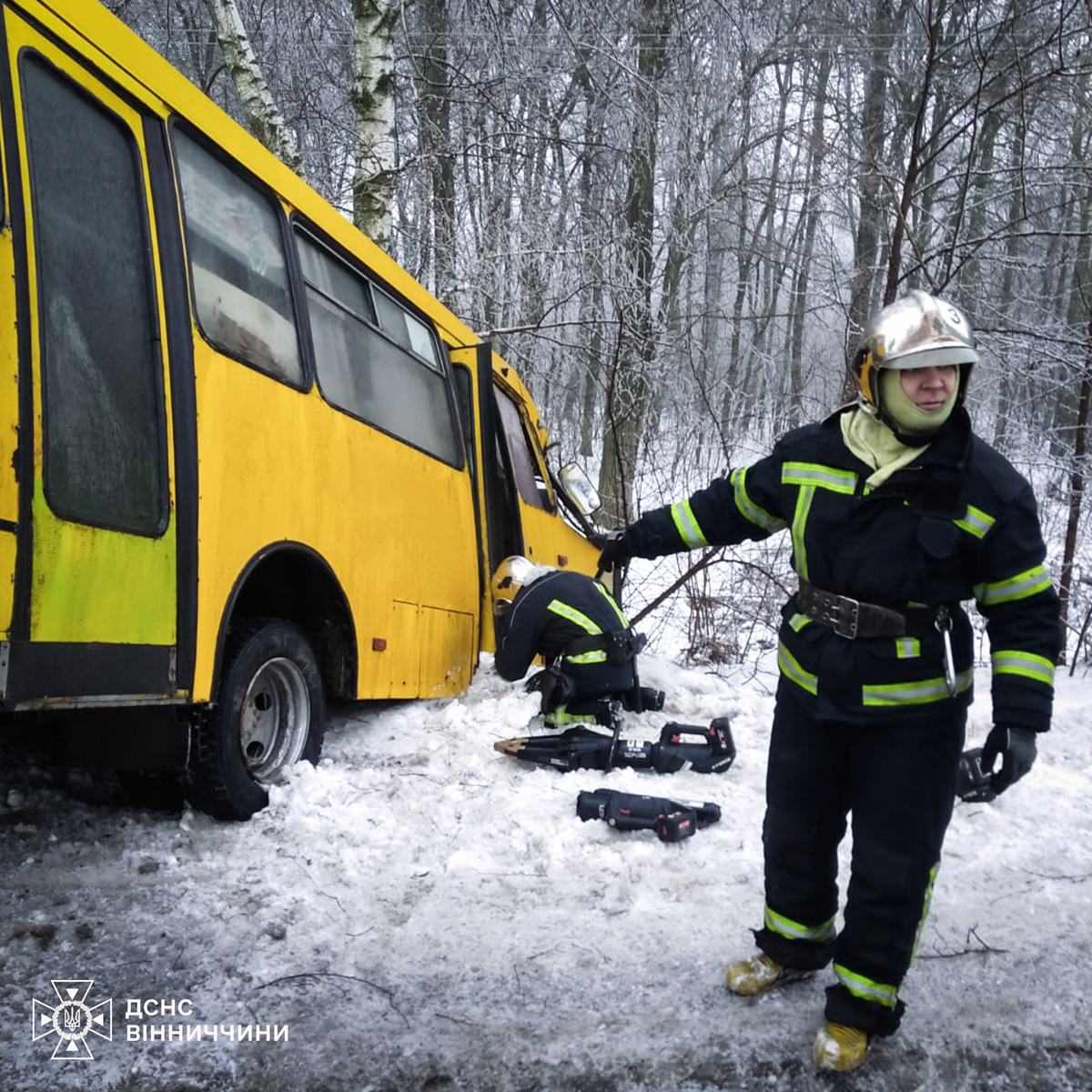 На Виннитчине рейсовый автобус съехал в кювет и врезался в дерево: спасатели деблокировали водителя
