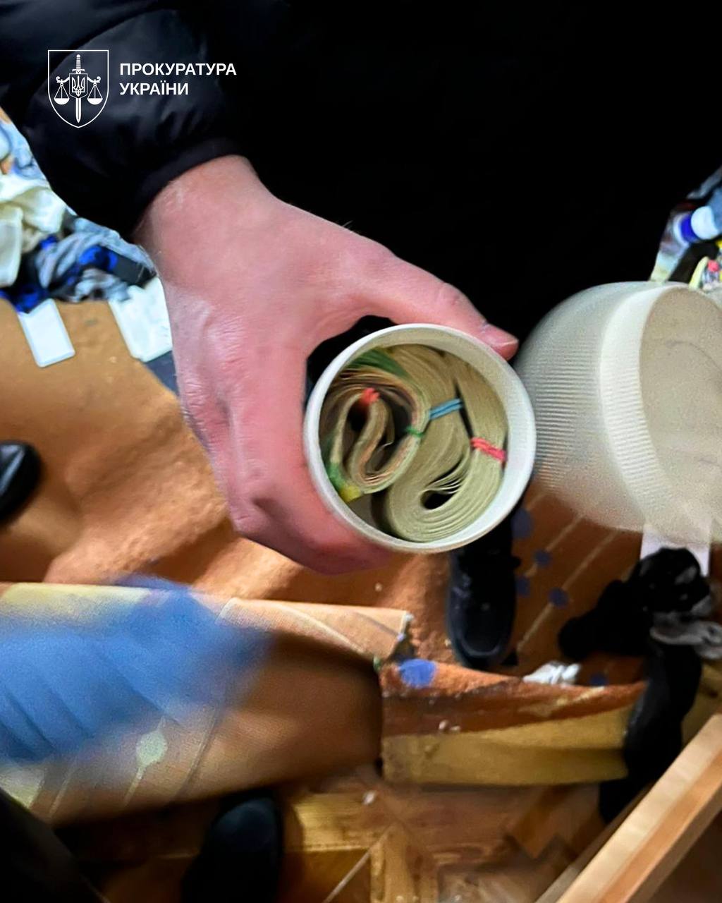"Среди изъятого – меченые купюры, переданные в качестве аванса в рамках контроля за совершением преступления. Готовится ходатайство об аресте имущества", – сообщили в Офисе Генпрокурора.